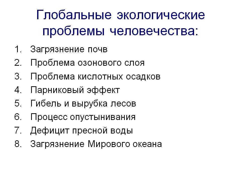 Из глобальных экологических проблем, существующих в современном мире, можно выделить: